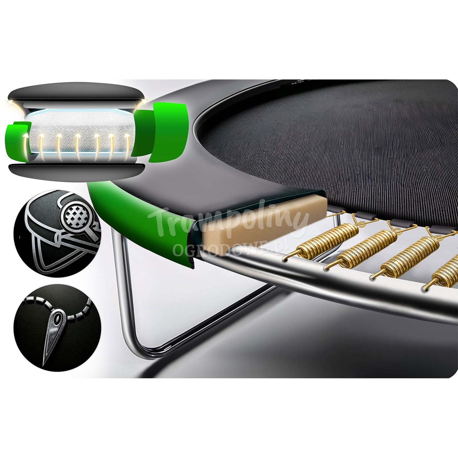 Zastosowaliśmy wydłużone i mocno naprężone sprężyny o zwiększonej elastyczności – dla jeszcze lepszego odbicia i komfortu skakania.